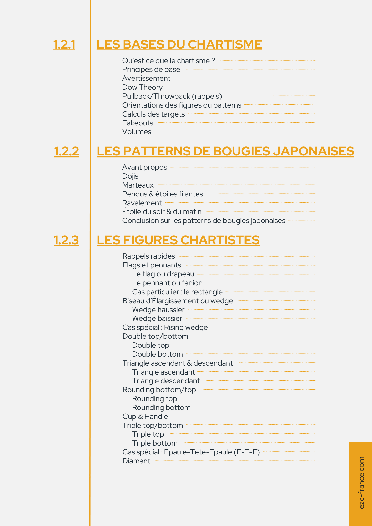 L’AT par EZC Volume intégral regroupe les six premiers modules essentiels pour maîtriser l’analyse technique. Du contenu riche et détaillé, cette intégrale couvre tout ce qu’il faut savoir pour évoluer dans le monde du trading. Vous explorerez des sujets variés : les bases du chartisme, les figures chartistes, les patterns de bougies japonaises, et les indicateurs techniques. Chaque module est conçu pour être progressif, mêlant théorie et pratique, afin de vous guider pas à pas vers l’autonomie.